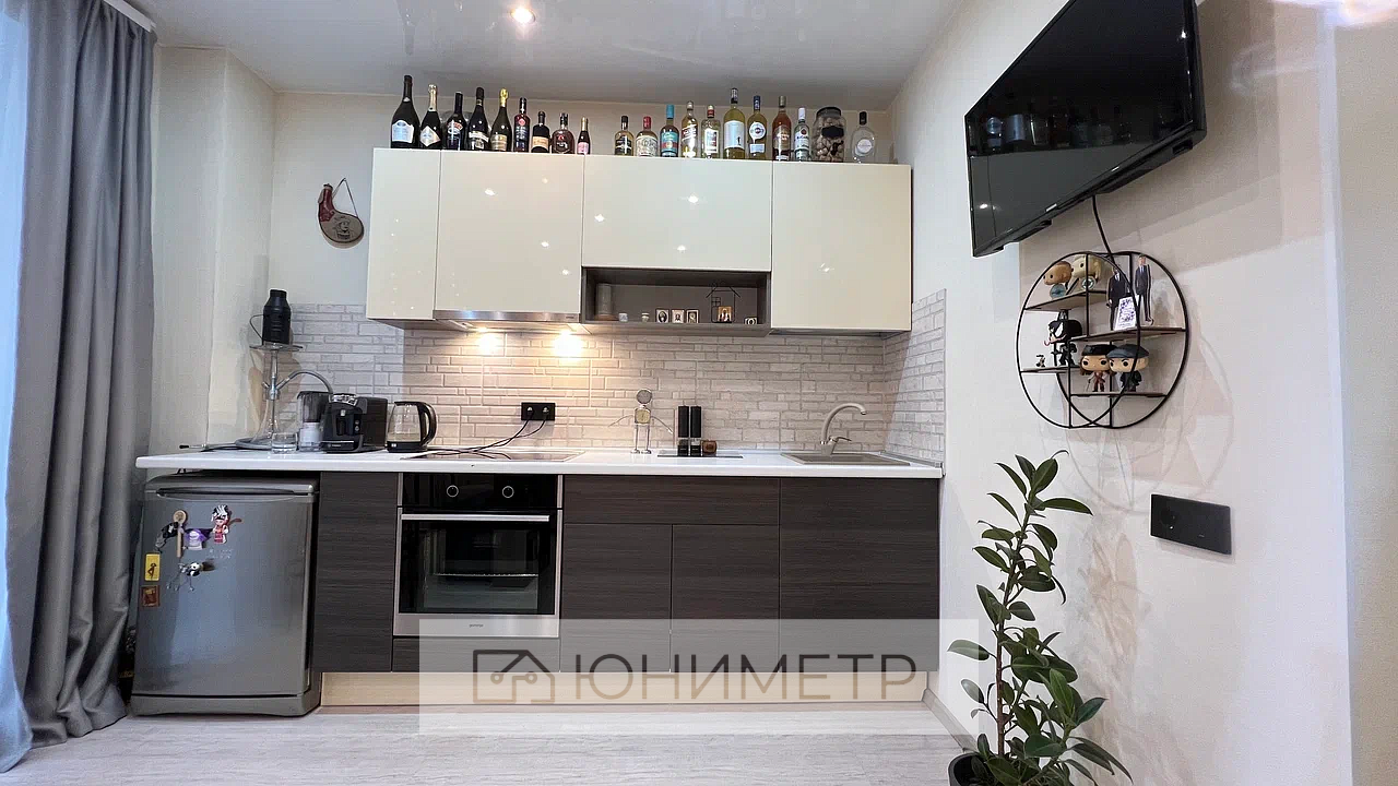 В квартире остается: кухонный гарнитур со встроенной техникой ( вытяжка, индукционная плита, духовой шкаф, холодильник).