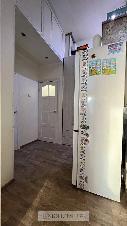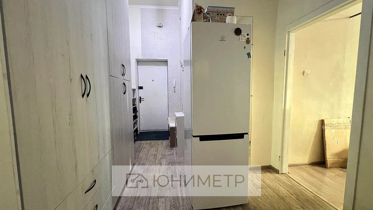 В прихожей есть встроенный вместительный шкаф, сделанный на заказ по индивидуальным размерам, остаётся новым владельцам.