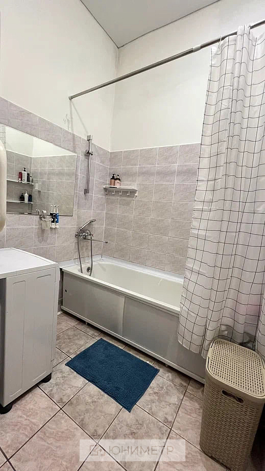 В квартире имеется раздельный санузел. Стены в ванной - кафельная плитка, туалет - обои.