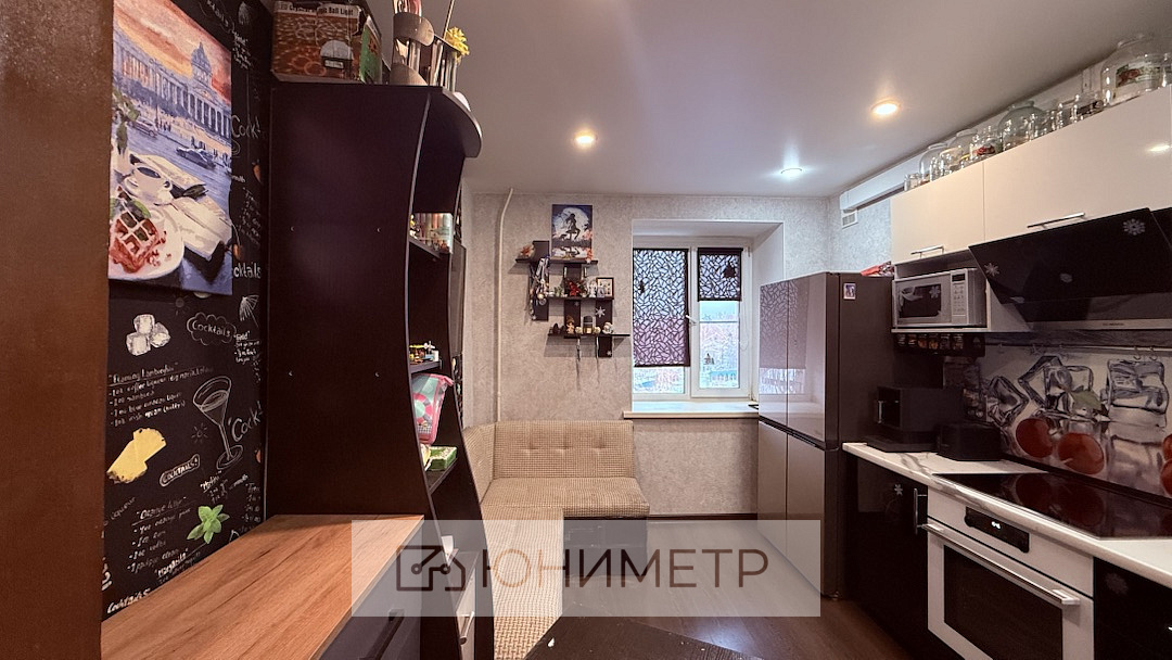 В прихожей имеется встроенный вместительный шкаф, выполненный на заказ по индивидуальным размерам, который остаётся новым владельцам. Также остается корпусная мебель на кухне.