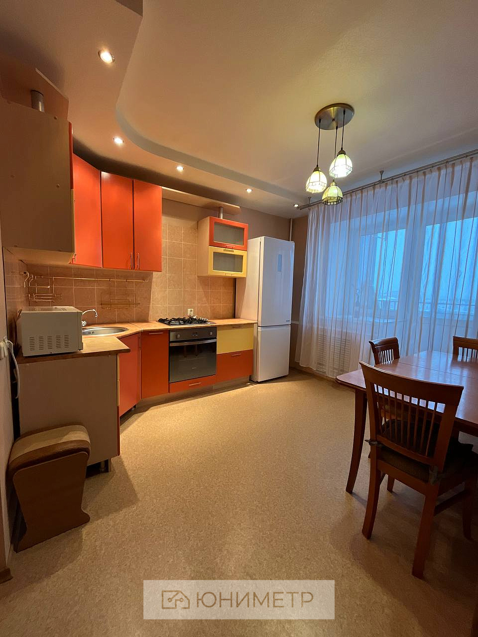При продаже остается кухонный гарнитур со встроенной техникой, мебель по договоренности.
